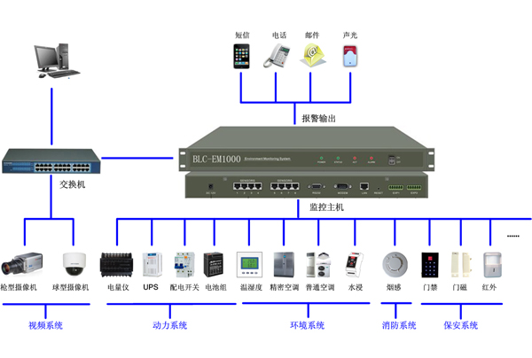 动力环境监控主机分别安装在前端各个监测点,与现场各种传感器和报警设备相连,当监测到异常情况时,监控主机通过短信报警器发送给设定的管理人员,同时通过网络将数据传输到监控中心。监控端软件采用B/S架构,用户可以在任意一台电脑上直接访问,集中监控管理软件具有界面友好、快速报警、自动纪录,操作简单方便等优点;该系统设计能完全满足24小时365天长时间正常运行;监控系统支持windows2000、XP、2003多种操作系统,并能实现软件的平滑升级。